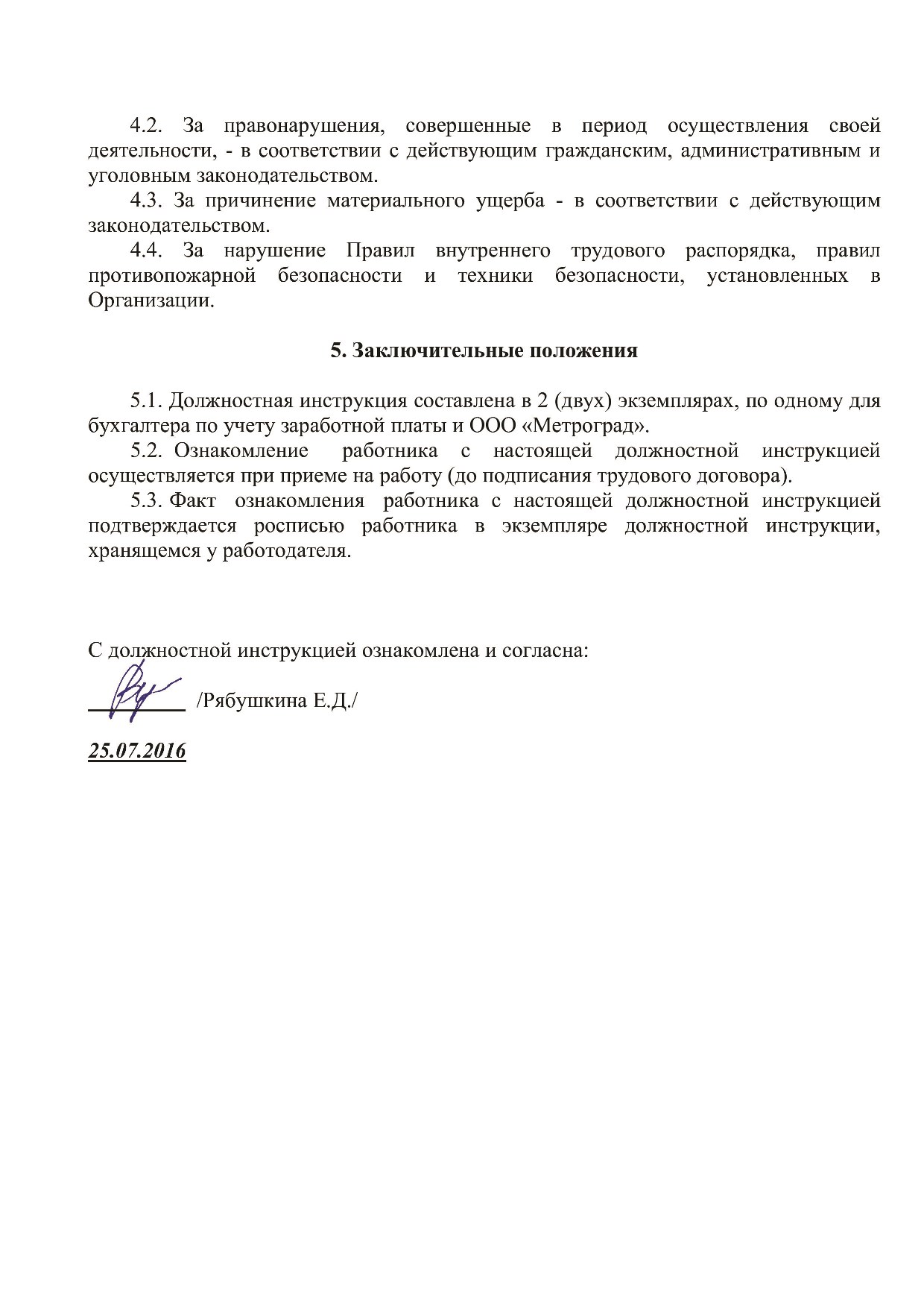 Должностная инструкция бухгалтера по расчету заработной платы, пример
