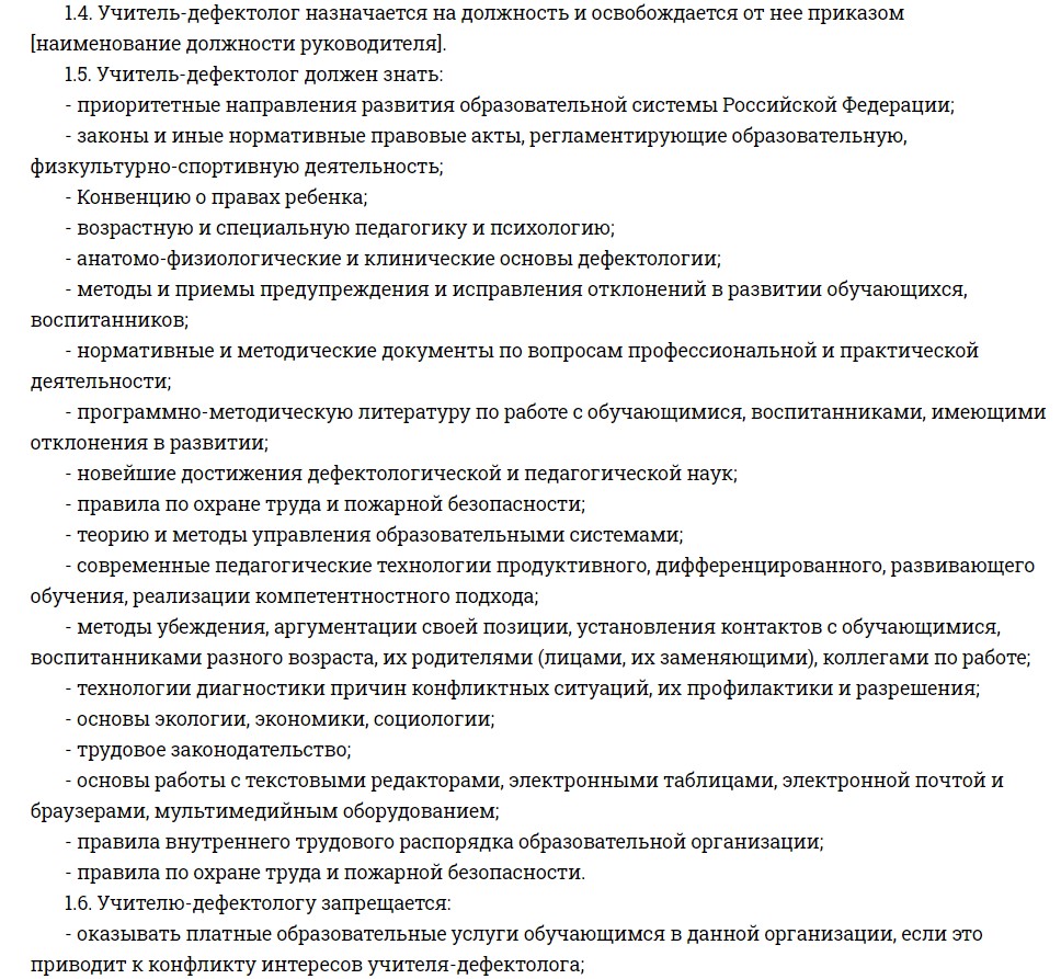 Дефектологу необходимы базовые медицинские знания, а также глубокие познания в психологии, социологии, конфликтологии. Такой сотрудник обязан уметь анализировать заключения врачей, педагогов и психологов, а также читать результаты анализов, обследований, тестов.