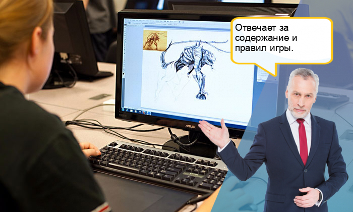 Гейм-дизайнер — специалист, отвечающий за разработку правил и содержания игрового процесса создаваемой игры. Его роль аналогична роли постановщика задачи в обычном программировании и режиссёра в кино.