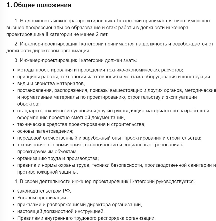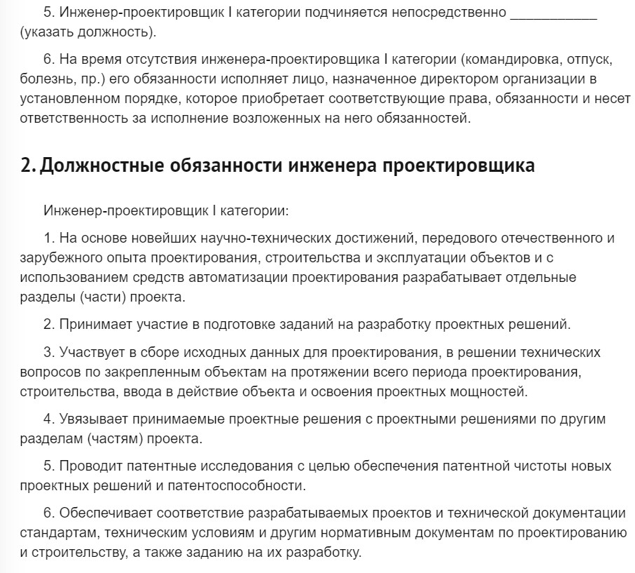 Должностные обязанности инженера-проектировщика
