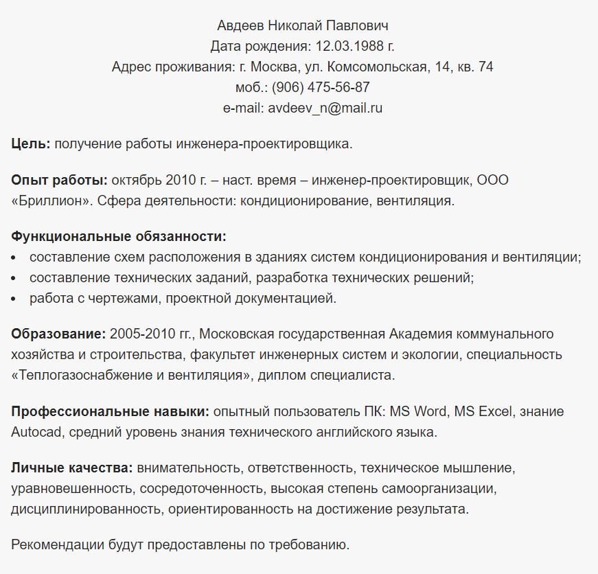Перечень универсальных обязанностей инженера-проектировщика: