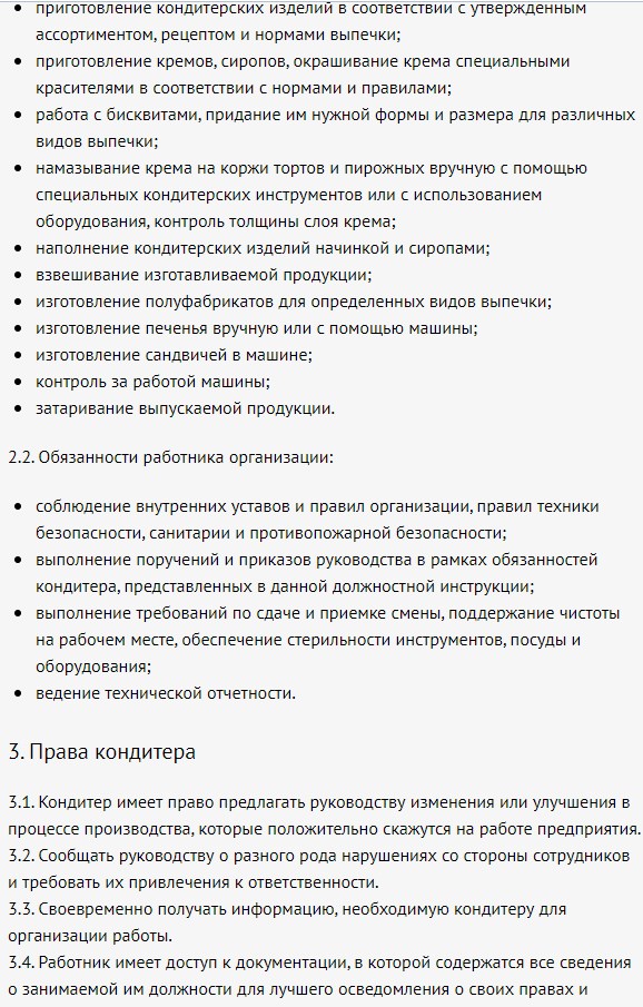• Тяжелые условия труда. Обычно кондитер работает в условиях высоких температур, при значительной влажности, высока доля ручного труда. Режим работы часто не предполагает значительных перерывов.