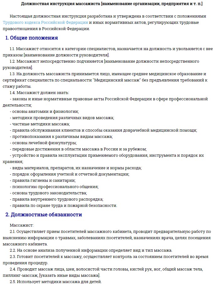 Полномочия массажиста
