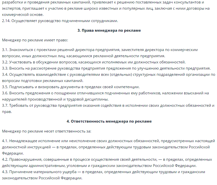 В зависимости от рода деятельности, а также поставленных задач, обязанности сотрудника рекламной сферы могут быть следующими: