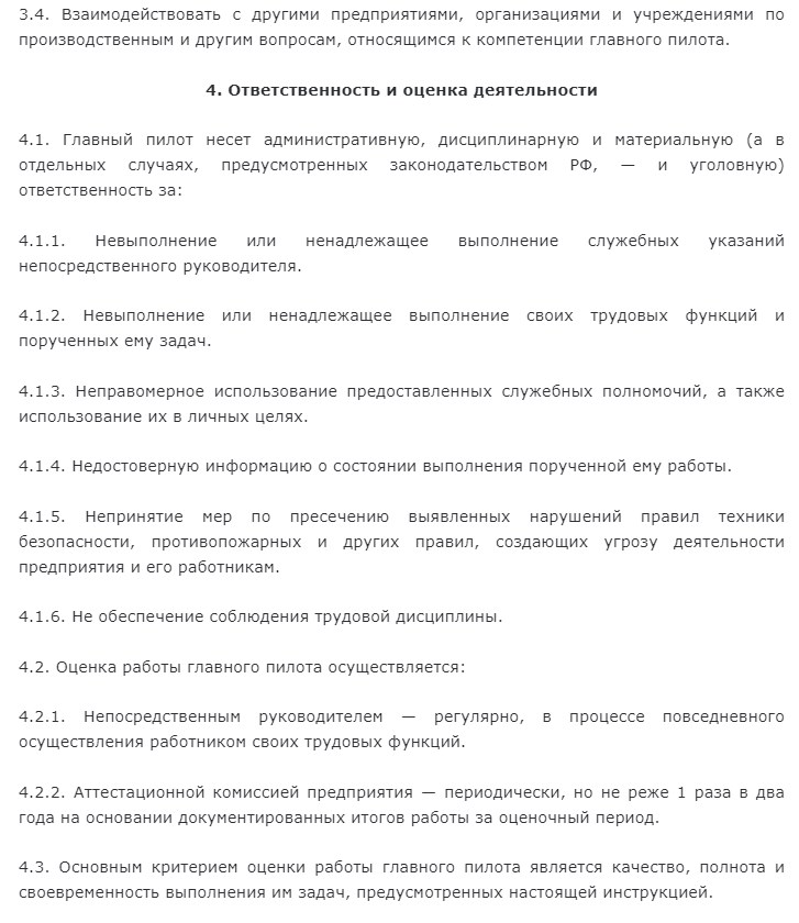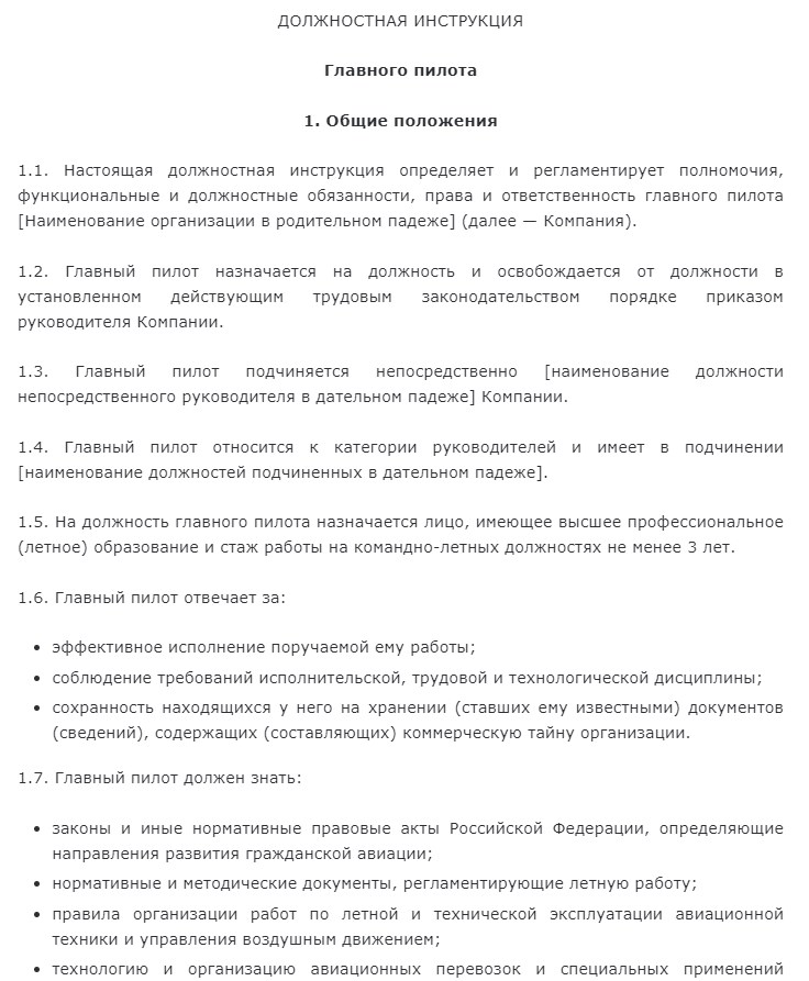 Перечень обязанностей пилота, занимающего должность командира воздушного судна: