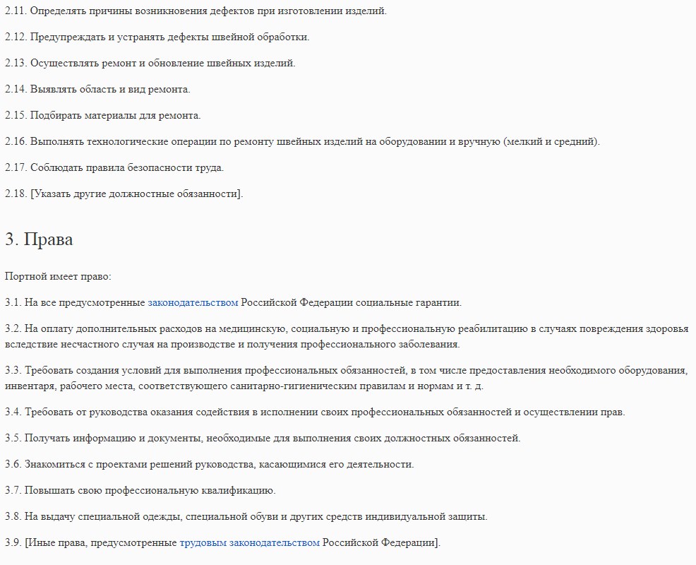 Портной изготавливает по индивидуальным заказам швейные изделия различного назначения и для различных категорий населения. Производит переделку изделий, участвует в запуске новых моделей в производство.