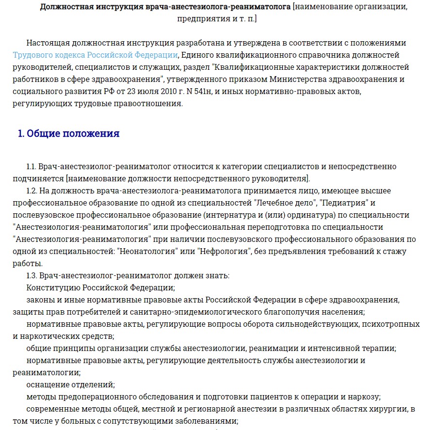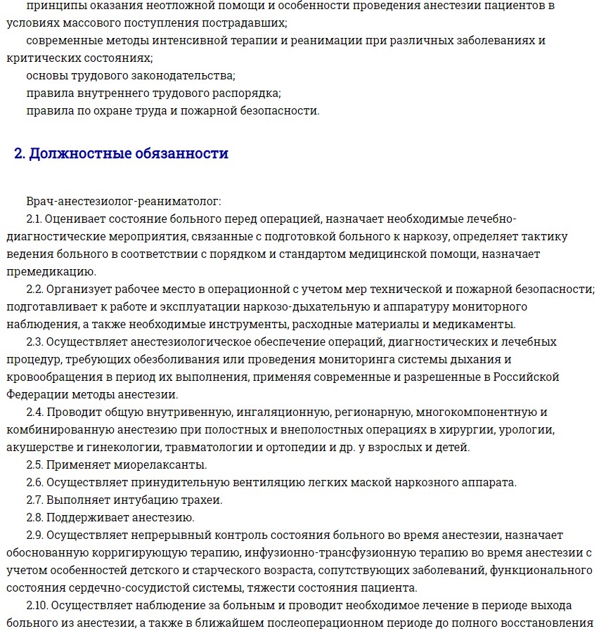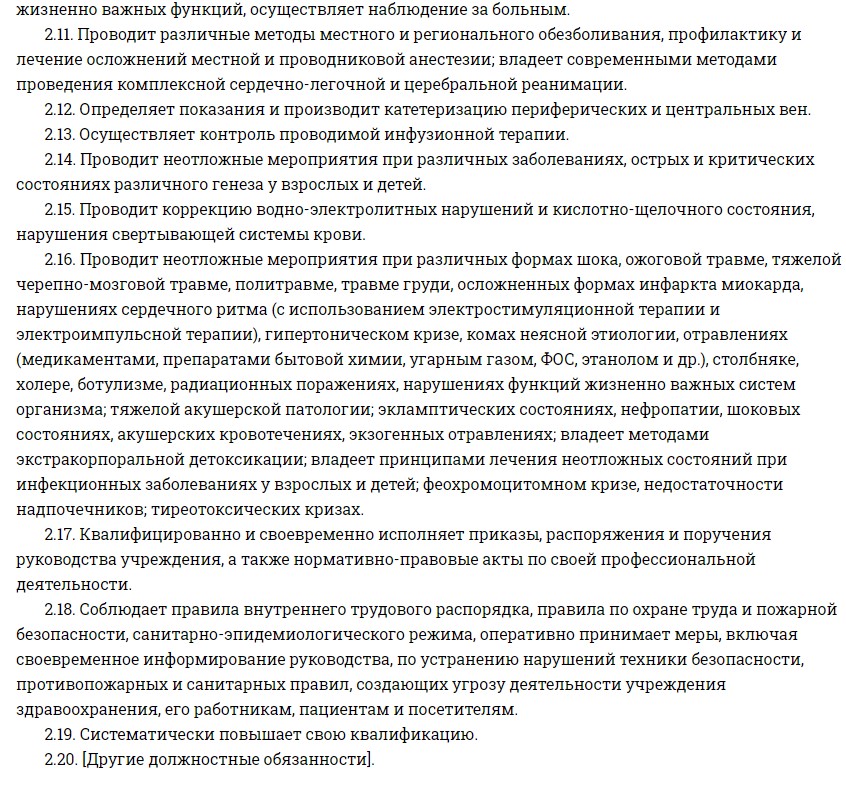 В перечень обязанностей анестезиолога-реаниматолога входит выполнение таких действий: