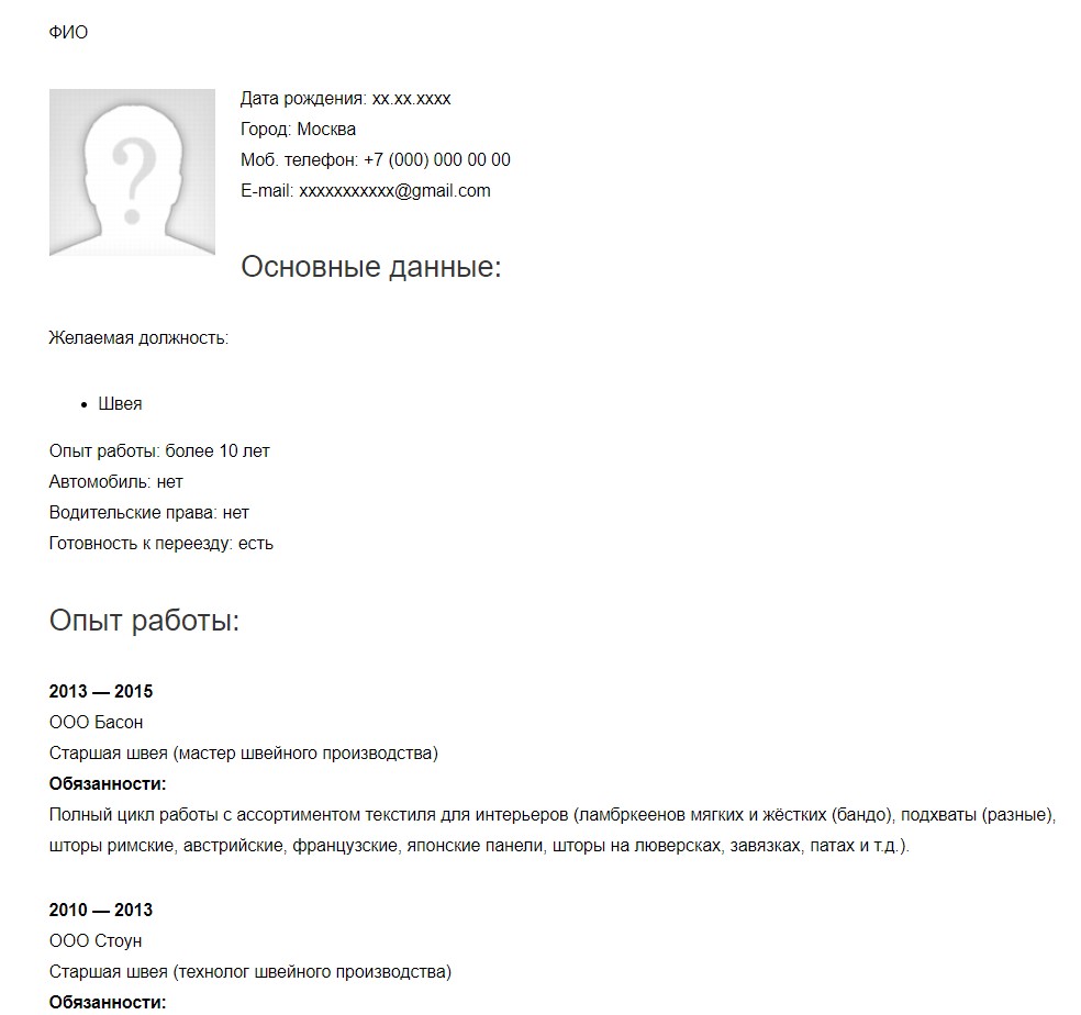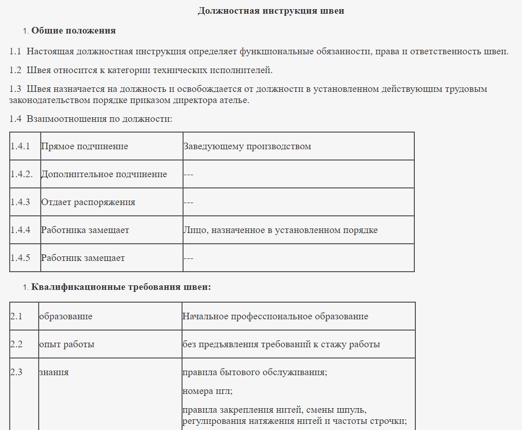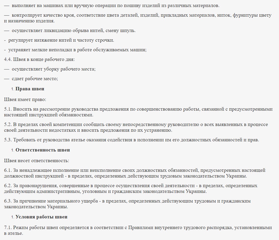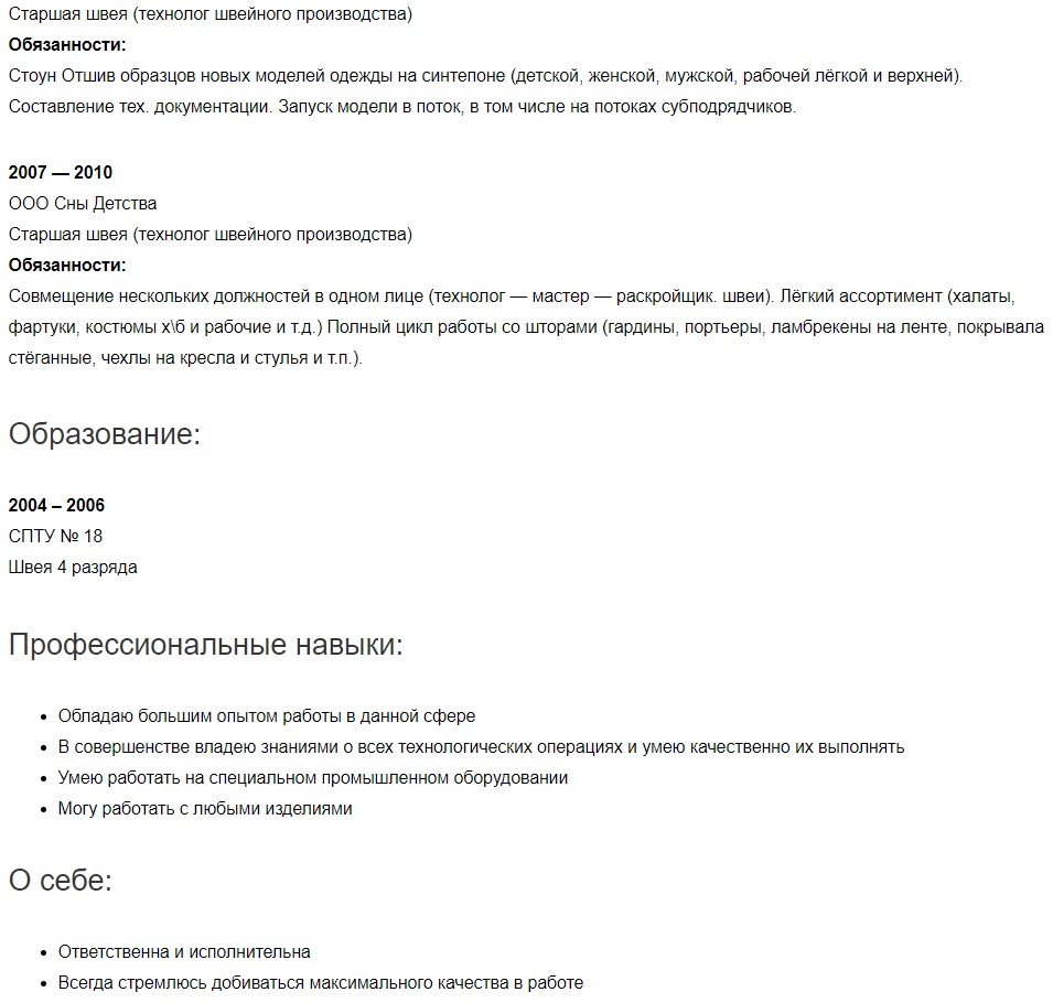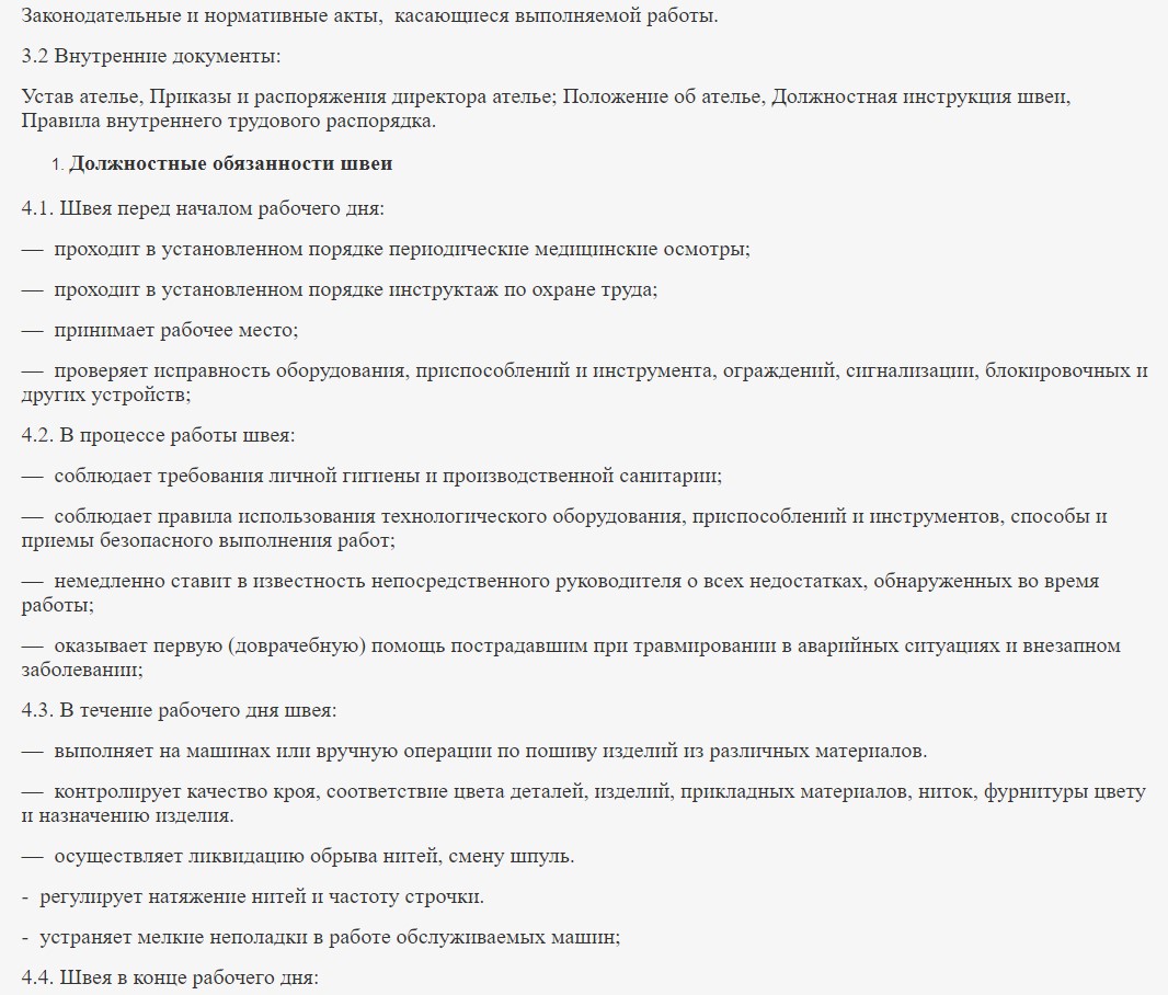 Описание профессии швеи