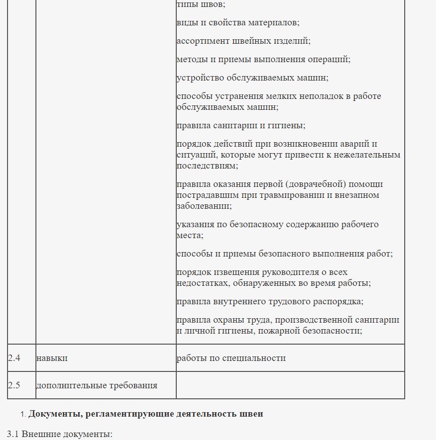 Перечень необходимых умений и функций зависит от профессионализма швеи: