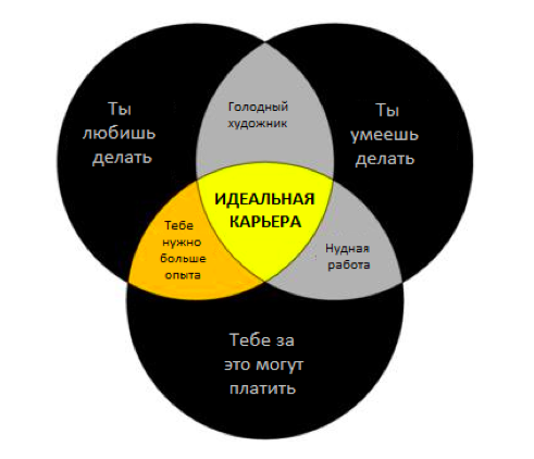 Когда все три сферы пересекаются — у человека идеальная карьера.